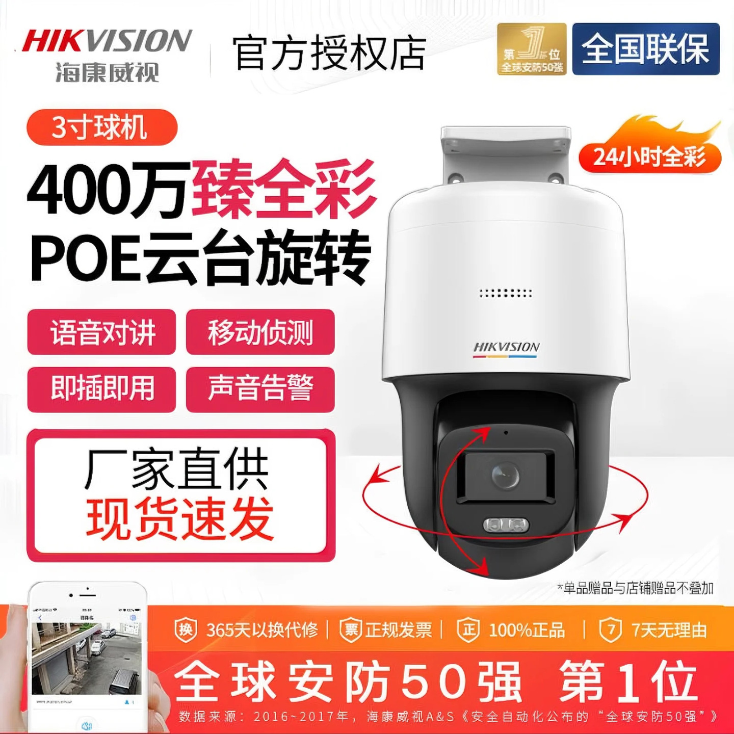 海康威视监控摄像头臻全彩POE云台变焦高清360无死角远程手机语音