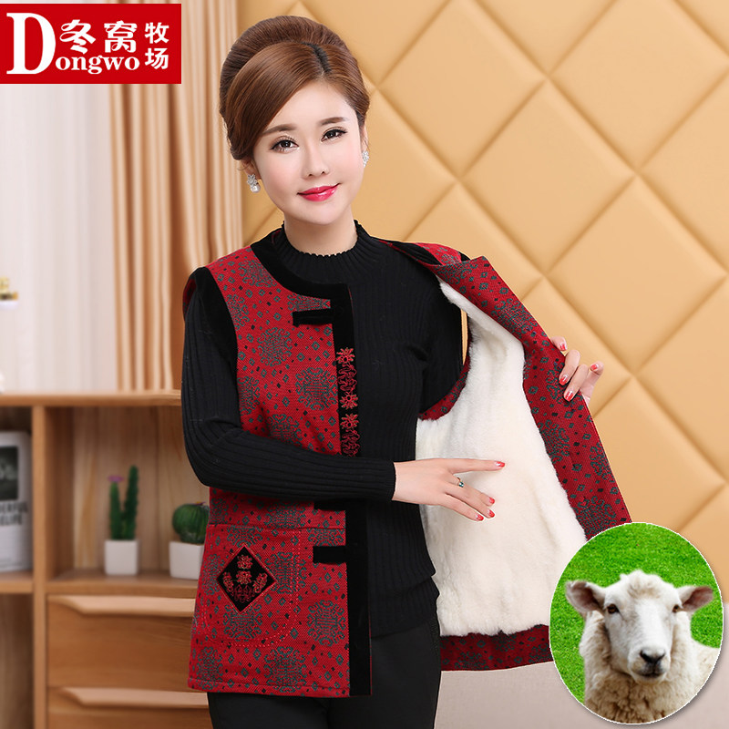 妈妈唐装奶奶羊毛马甲背心加绒厚60岁中老年人女装老人马夹棉衣70