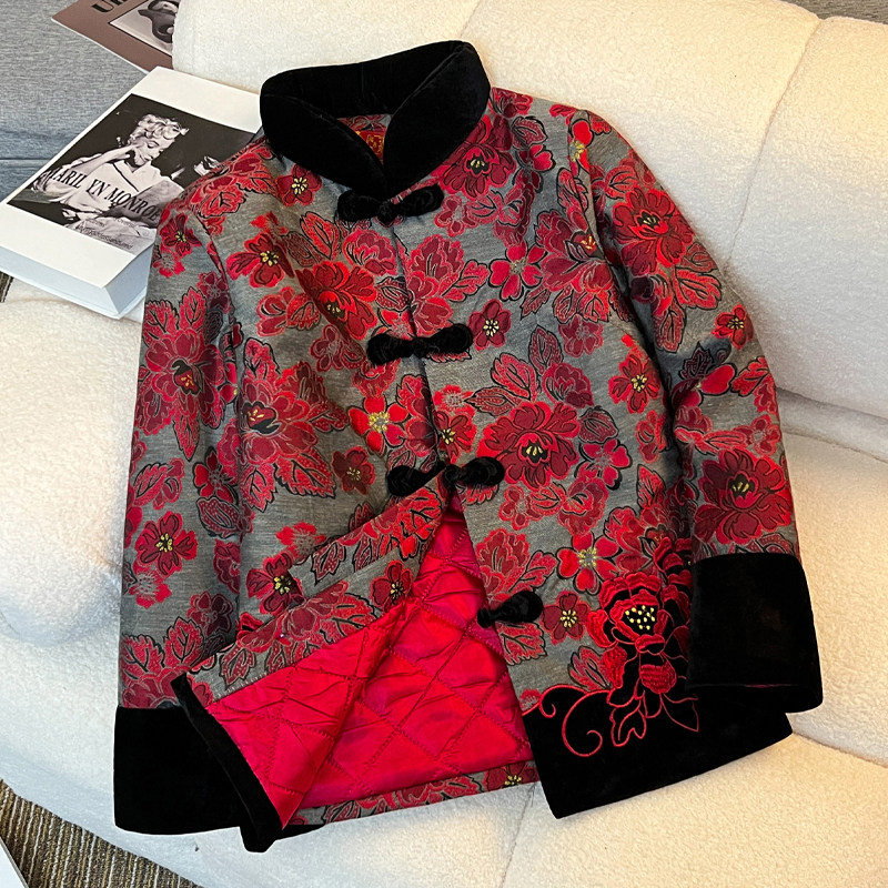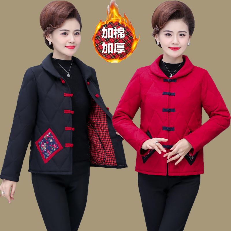 9170妈妈装新中式秋冬新款中老年女装唐装上衣加绒加厚国风棉外套