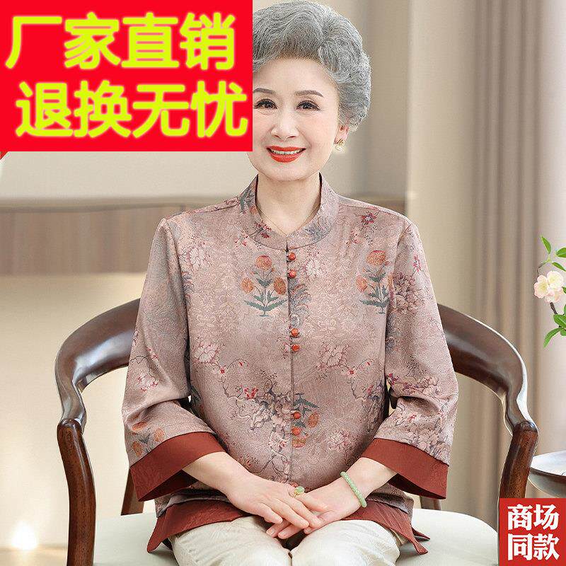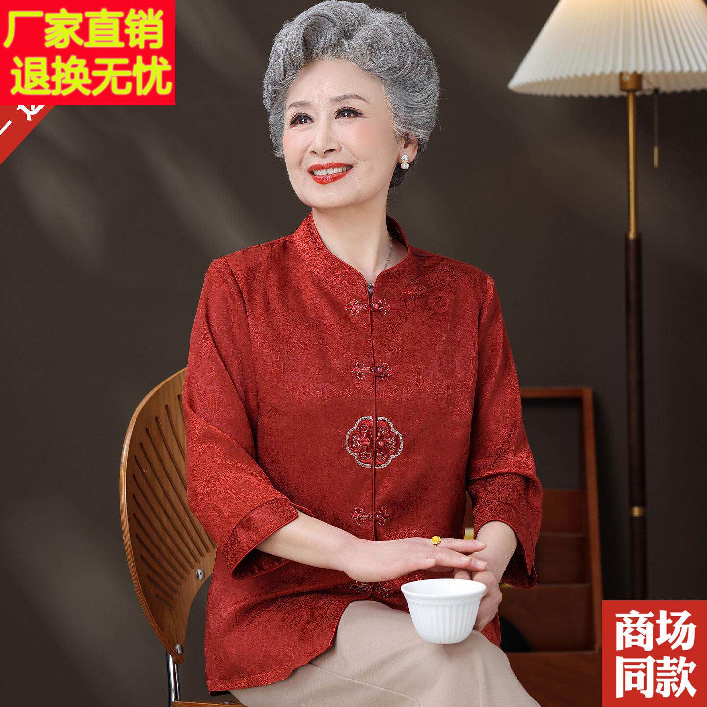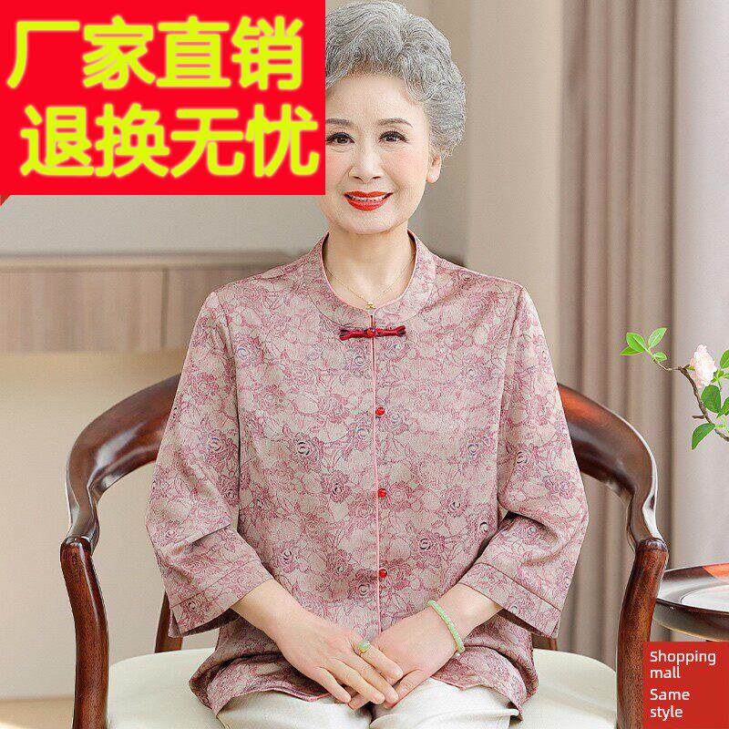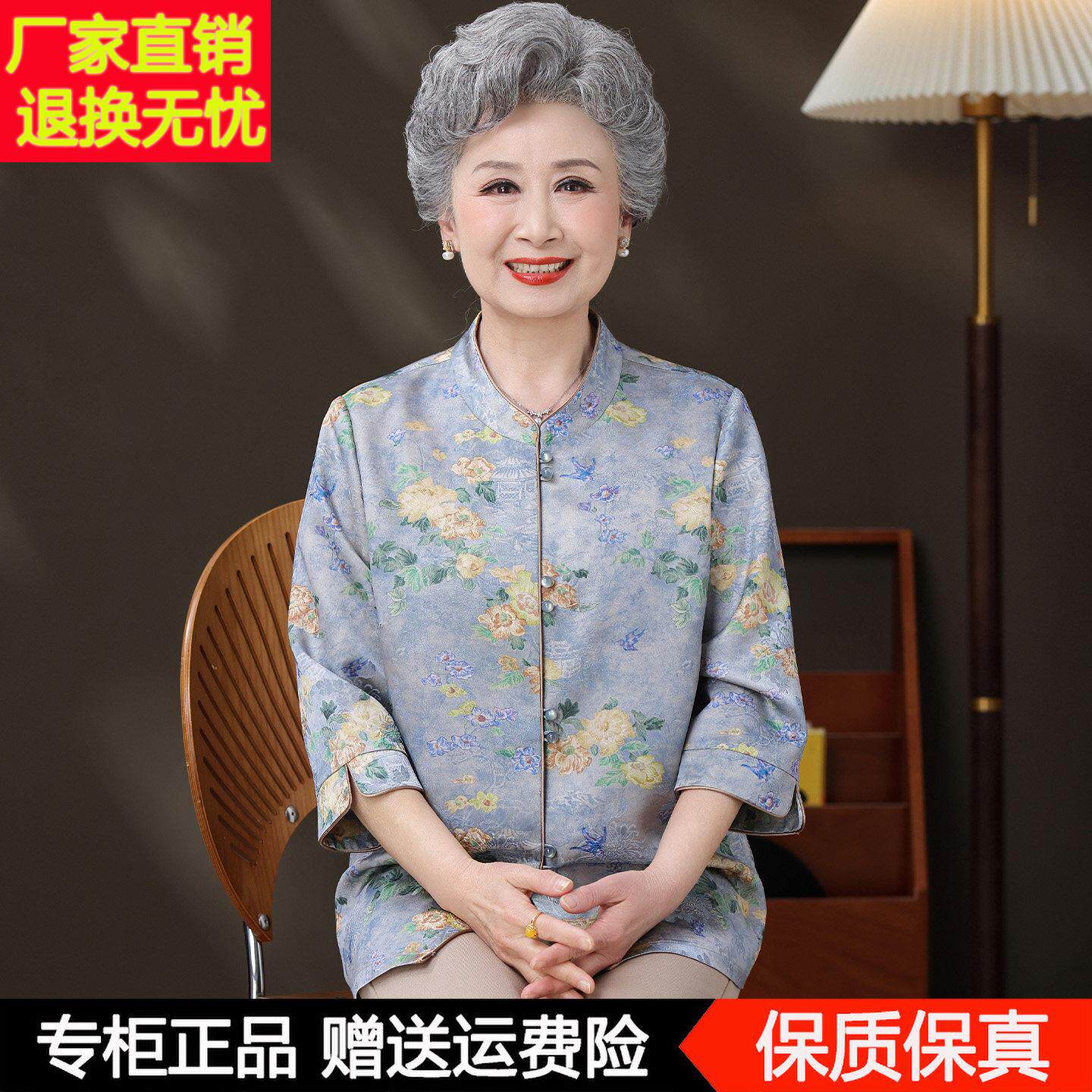 奶奶装夏装七分袖桑蚕丝衬衫唐装老年人女装新中式国风妈妈装上衣