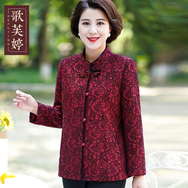 中老年女装妈妈中国风唐装立领春装新款外套洋气高贵老太太上衣女