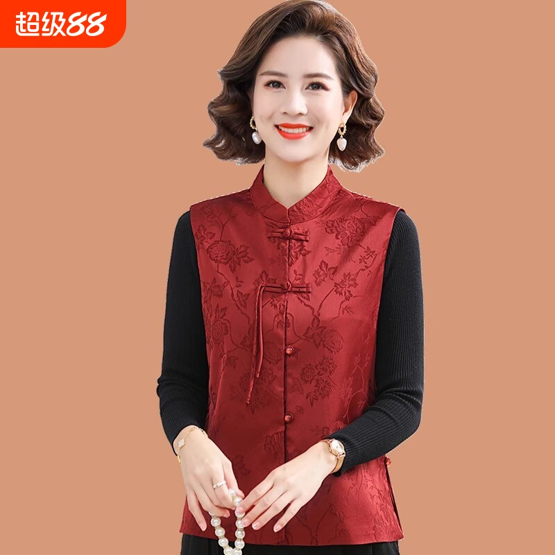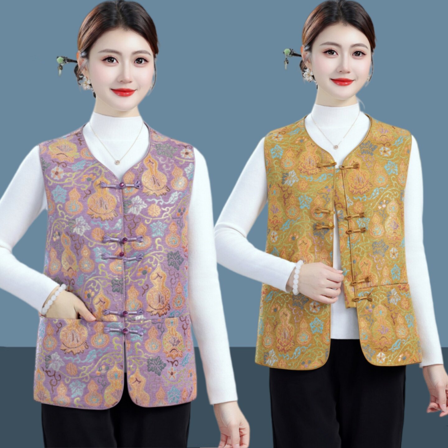 (商场同款专柜发货)中年妈妈新中式改良唐装大码马甲复古盘扣女