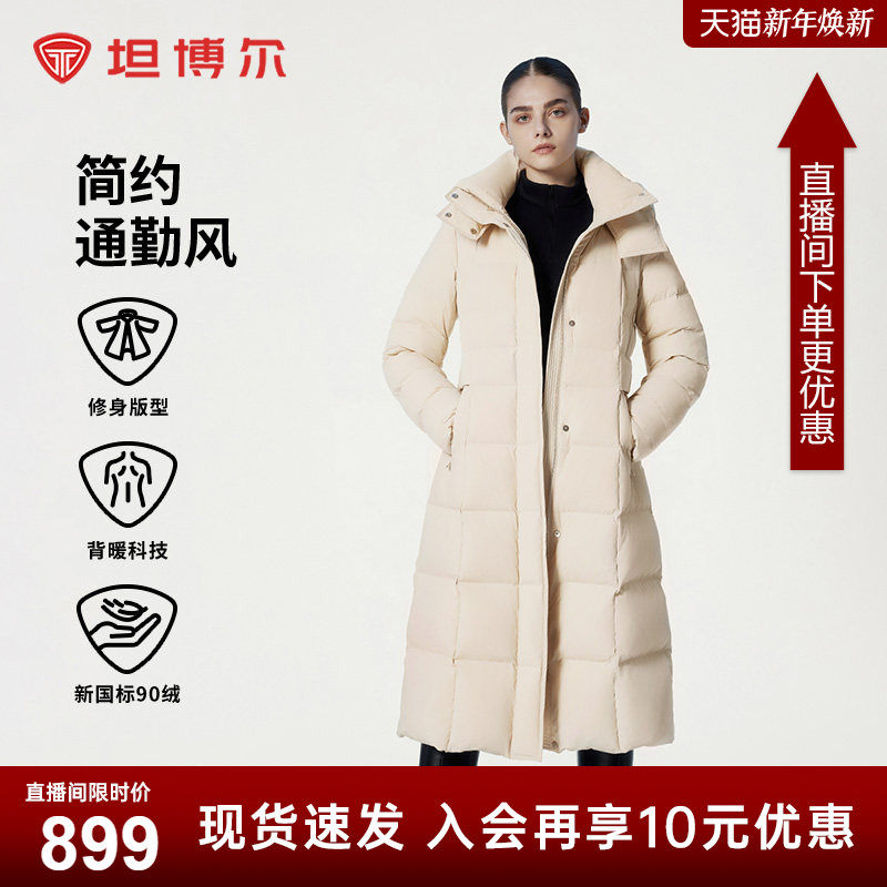 【衣橱推荐】坦博尔冬季女士显瘦长款过膝羽绒服连帽加厚保暖外套