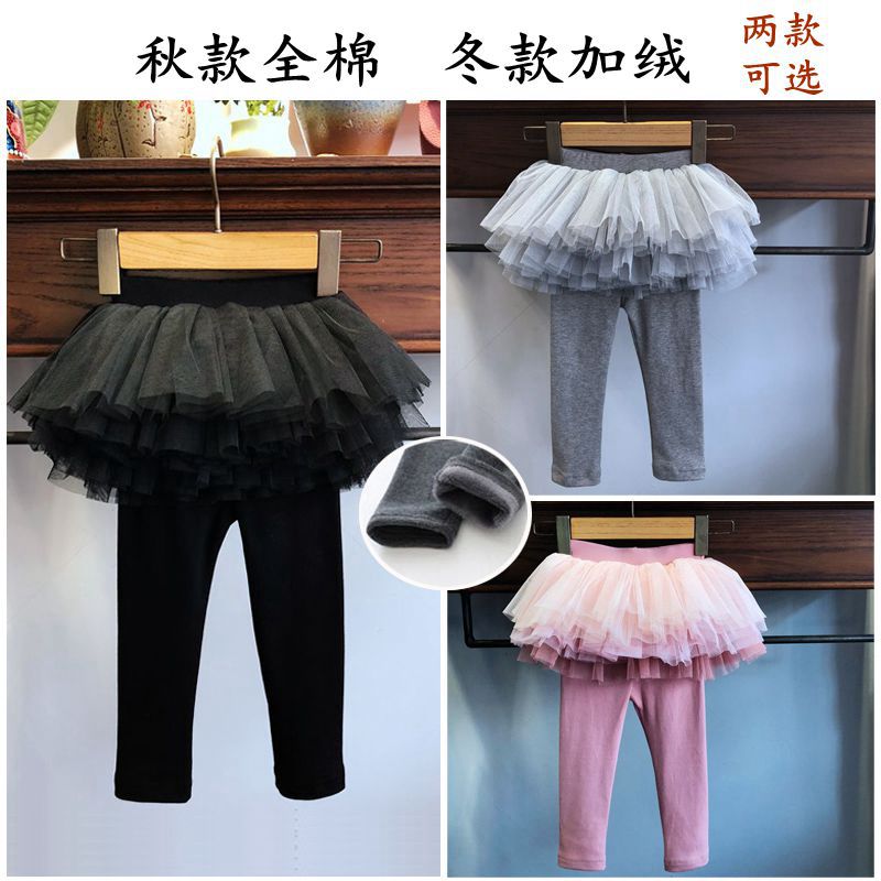 女童裙裤假两件公主裙子春秋儿童纯棉打底裤蓬蓬纱裙裤宝宝长裤子