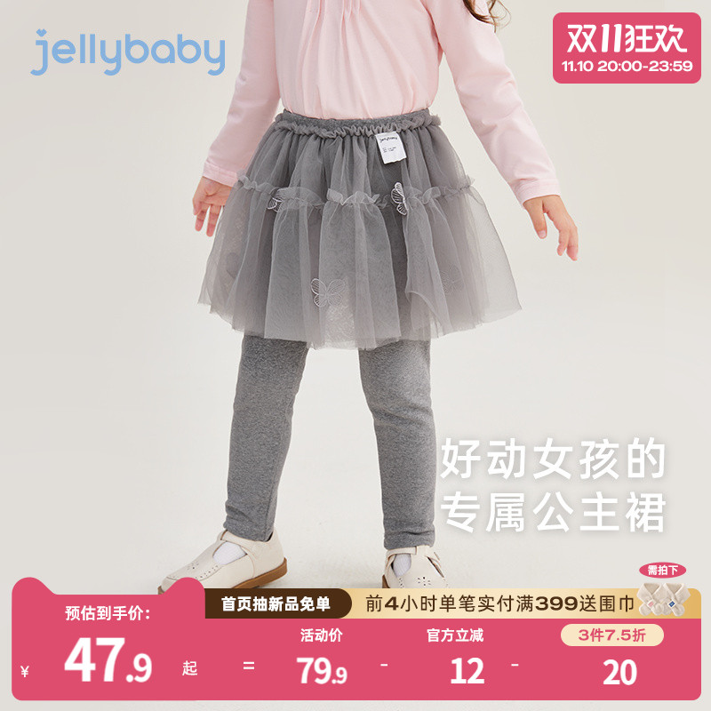 女童秋季假两件打底裤半身裙女宝宝春秋装外穿裤裙儿童甜美纱裙子