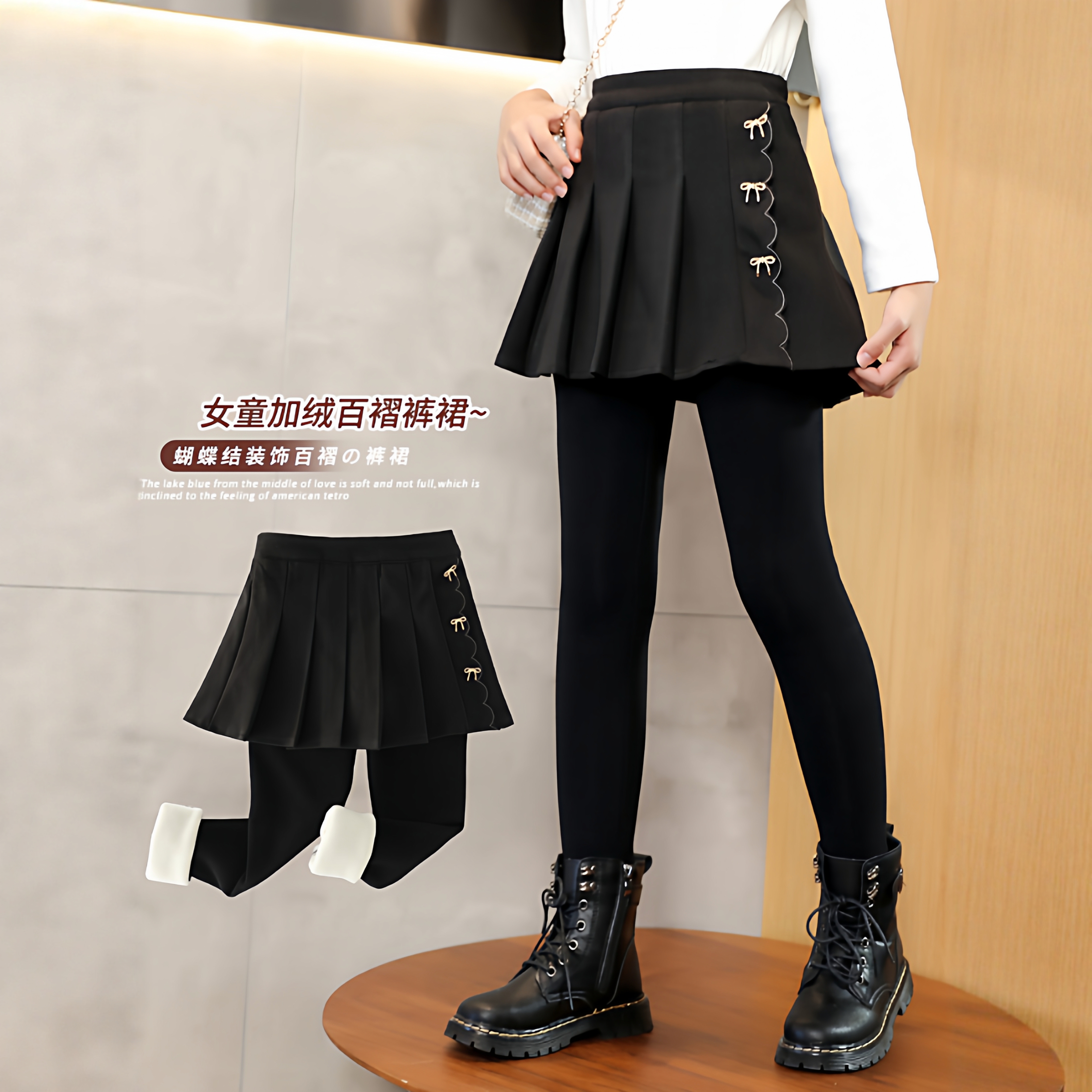 女童加绒打底裤秋冬假两件裤裙百褶裙冬装裙裤儿童加厚裙子打底裙