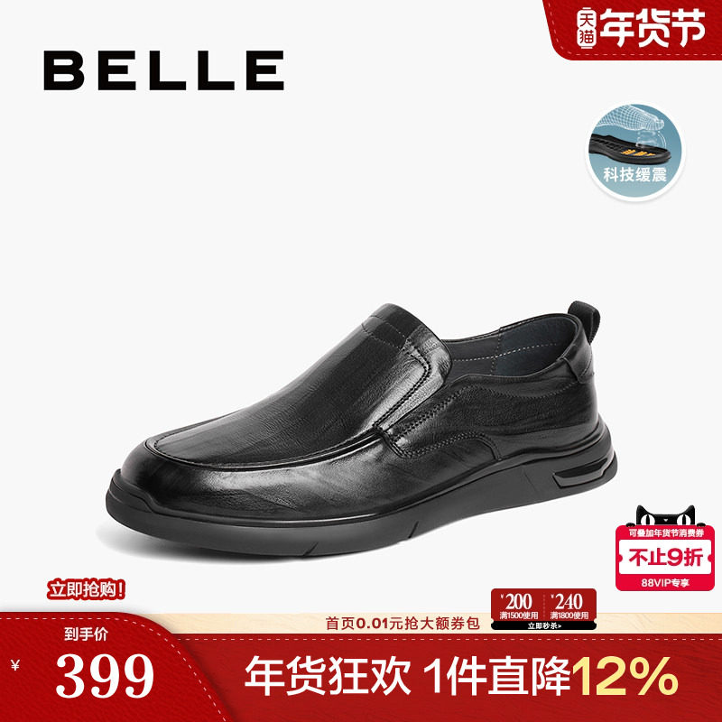 百丽男鞋通勤商务鞋男鞋子夏季新款牛皮革套脚休闲皮鞋A1091BM3