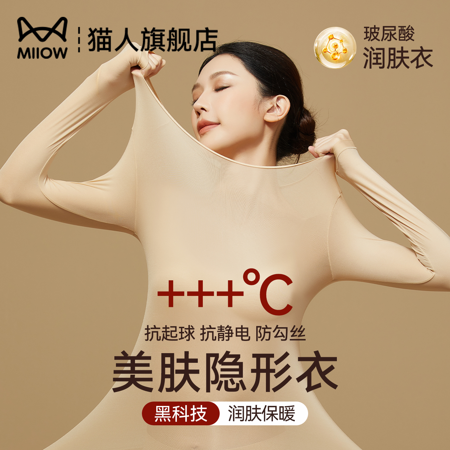 猫人超薄肤色肌底衣保暖内衣女士发热隐形秋衣秋裤套装美肤衣冬季