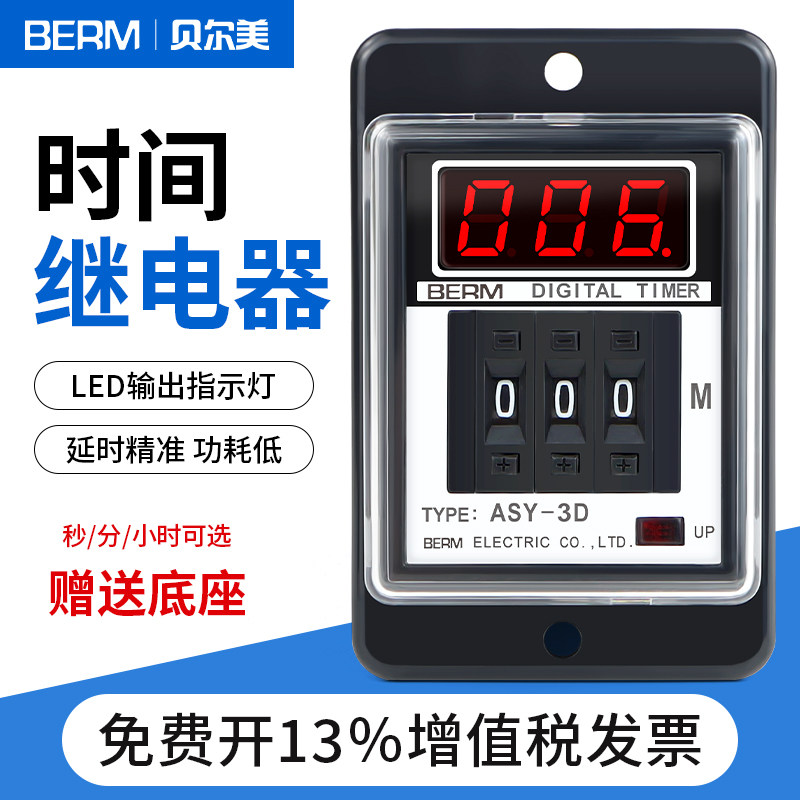 贝尔美ASY-3D计时器999M999S延时继电器ASY-3DT/SM数显时间继电器