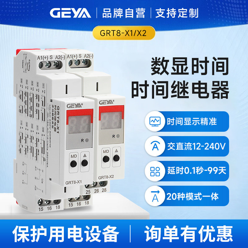 GEYA格亚 数显时间继电器220V 数字式时控延迟控制器 GRT8-X