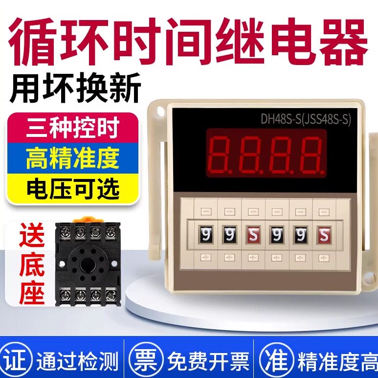 DH48S-S数显时间继电器 220v24v12v无限循环带底座时控可调定时