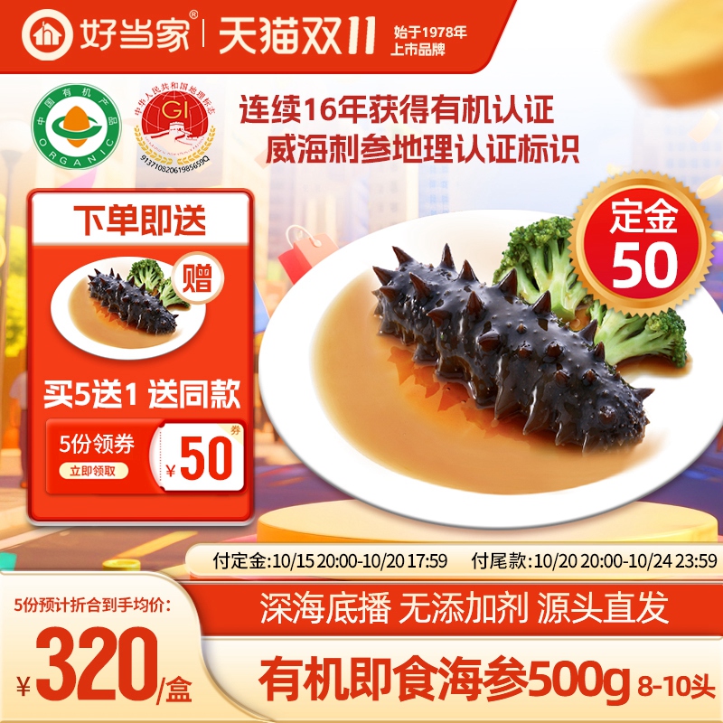 海参即食好当家深海底播有机刺参500g8-10头非海参干货礼盒旗舰店