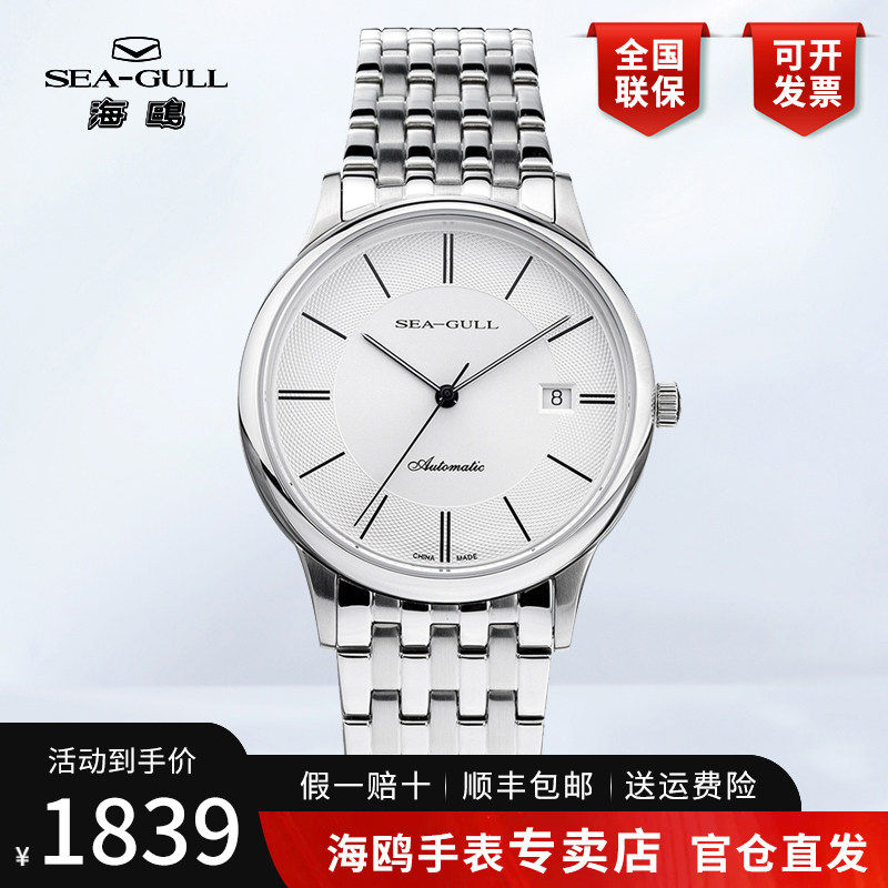 正品海鸥手表男士时尚简洁精钢防水日历全自动机械表男表816.364