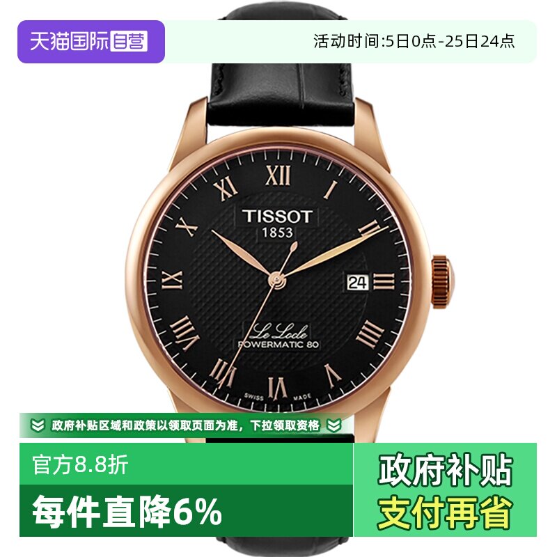 【自营】Tissot天梭力洛克系列男士自动机械表瑞士经典男表精钢