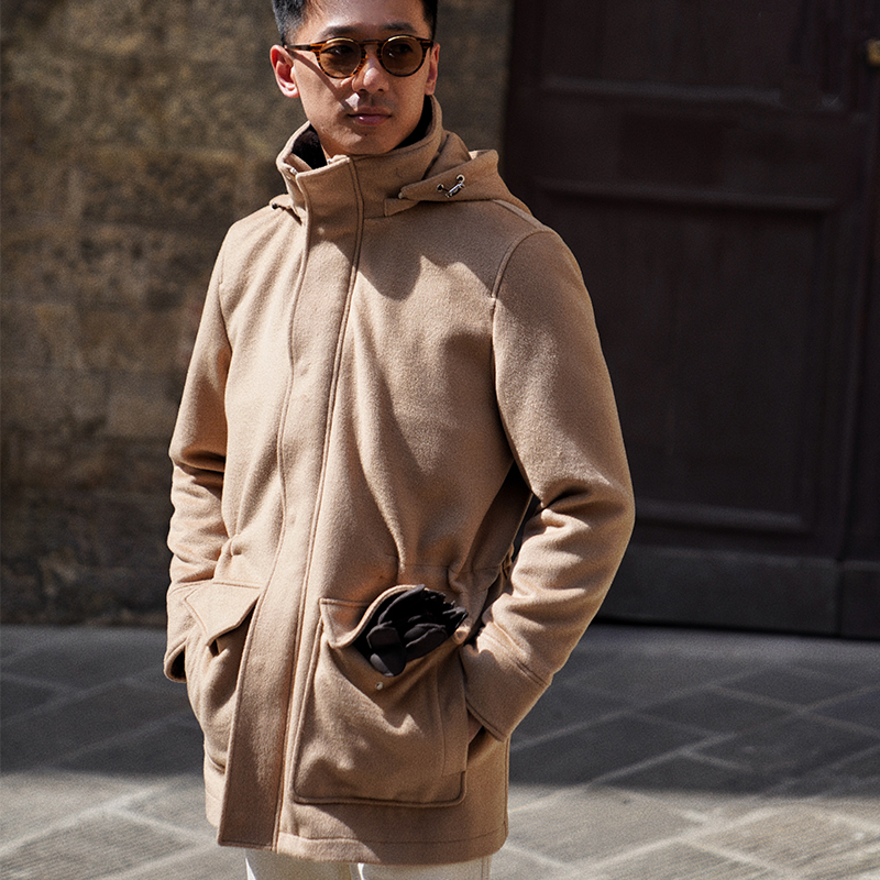 CM那不勒斯皇后正驼色羊毛羊绒混纺派克中长款男士派克风衣155