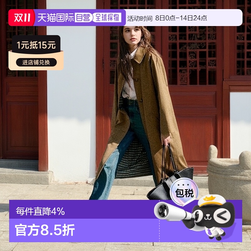专柜正品马天奴秋冬新款驼色双排扣印花风衣气质外套外搭时尚百搭