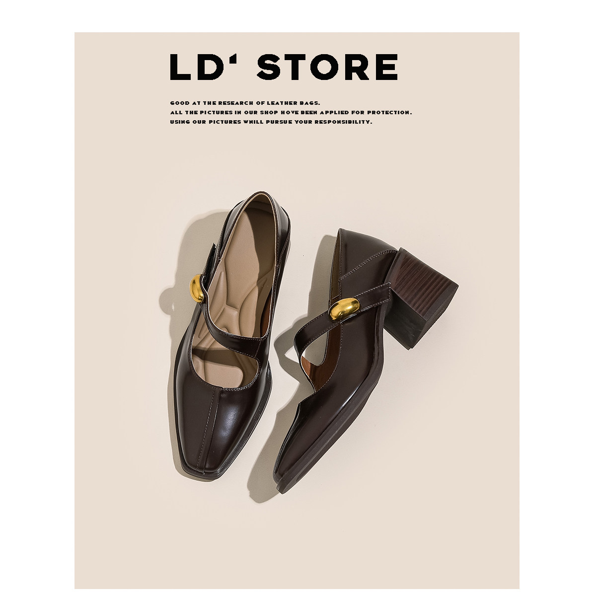 星期六法式玛丽珍鞋女2025年方头粗跟浅口单鞋英伦风一字扣小皮鞋