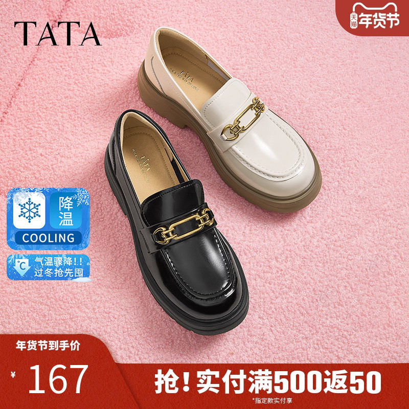 Tata他她英伦厚底乐福鞋女鞋浅口单鞋小皮鞋2024冬季新款WIZ12CA4