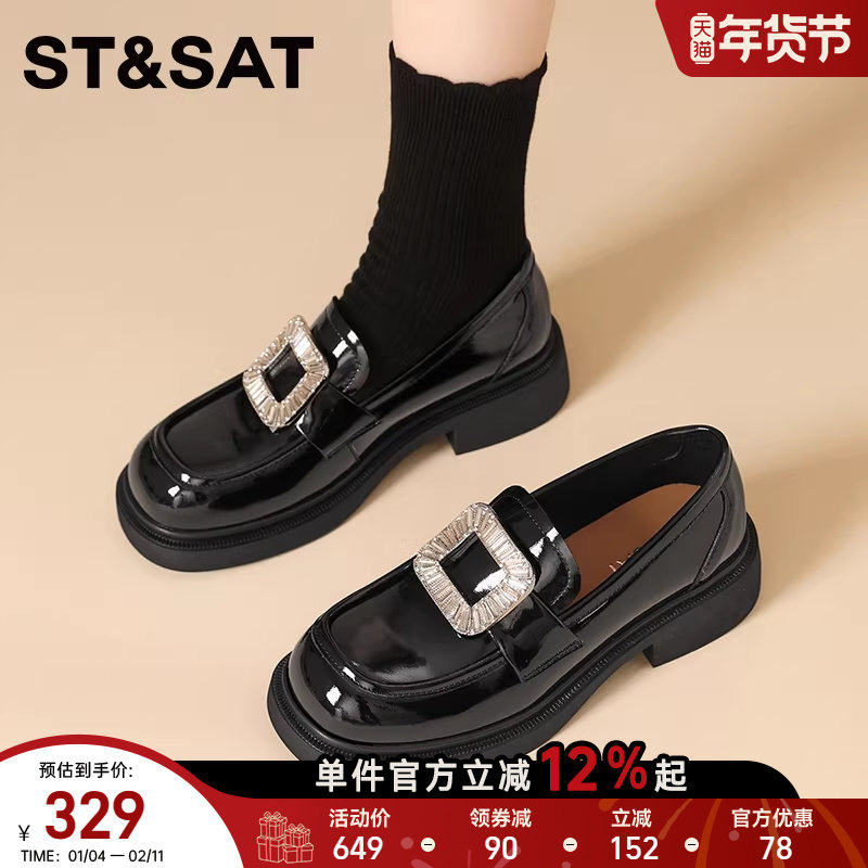 星期六厚底乐福鞋女款新款女鞋英伦风小皮鞋女一脚蹬方扣浅口单鞋