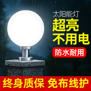 太阳能户外柱头大门围墙圆球围墙灯别墅花园防水自动亮遥控庭院灯