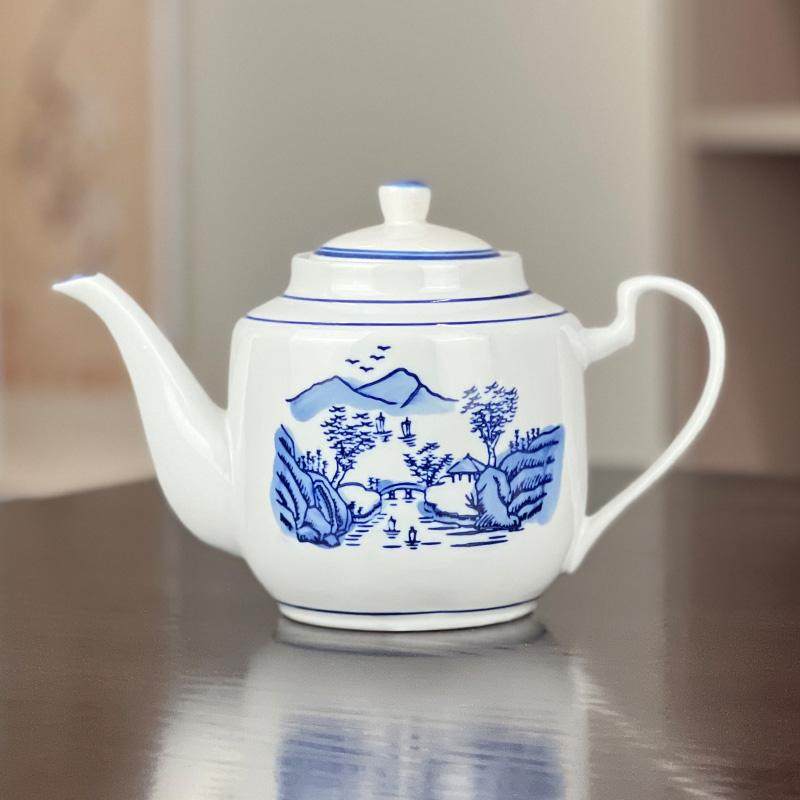 明泉茶斋釉下手绘蓝竹小茶壶陶瓷家用单壶带过滤草木灰家用泡茶壶