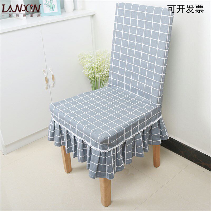 定制灰格子椅子套罩棉麻家用饭店椅套 连体餐桌椅坐垫套装椅套布