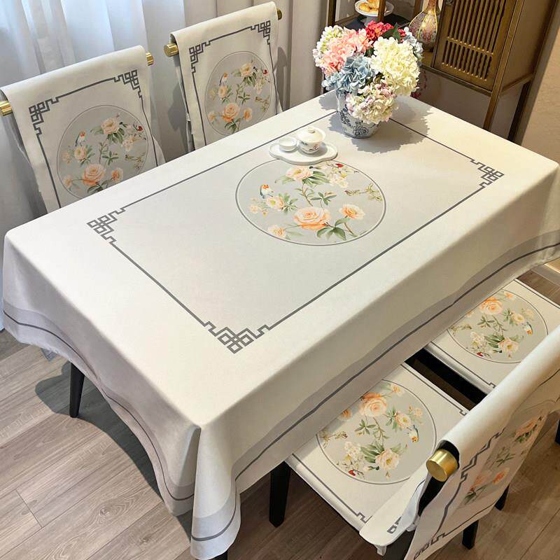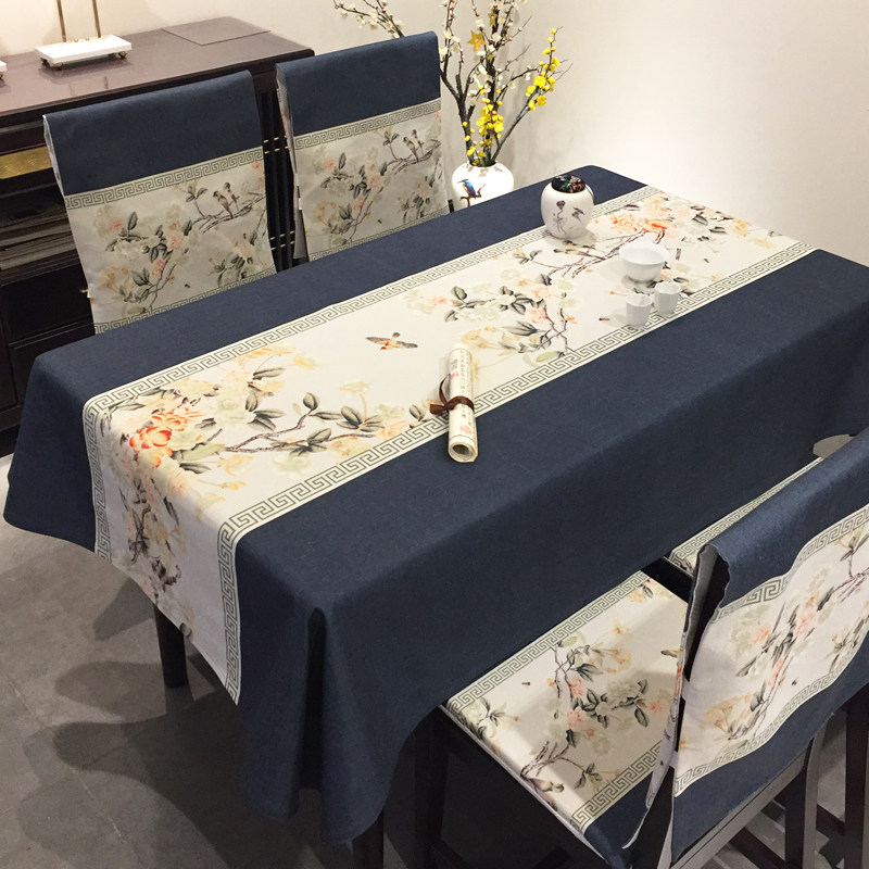 餐桌布新中式长方形客厅椅套罩套装花鸟加厚棉麻不褪色中国风台布