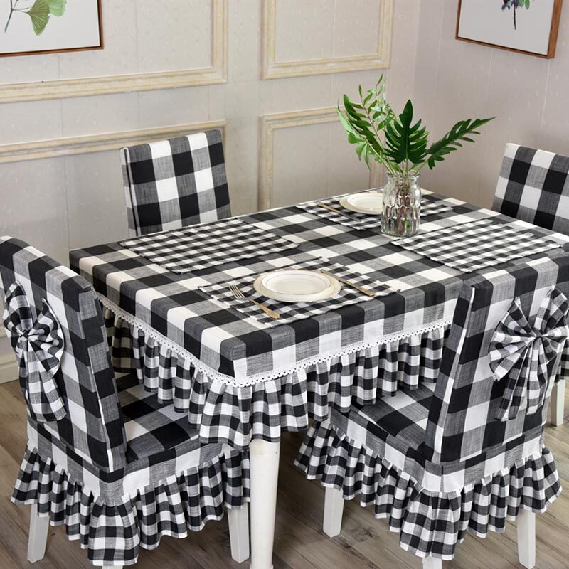 简约现代黑白格子桌布小方格布艺棉麻小清新餐桌桌布桌椅套罩套装