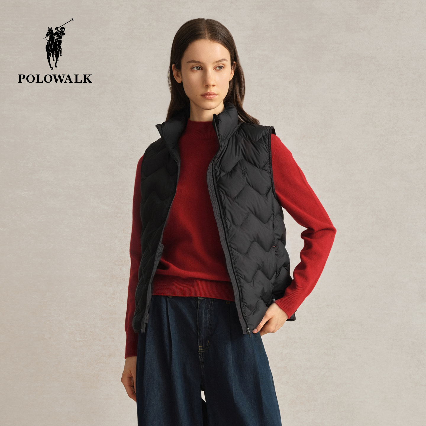 【90鹅绒】POLOWALK女式羽绒马夹2025冬季新品韩版立领羽绒背心女