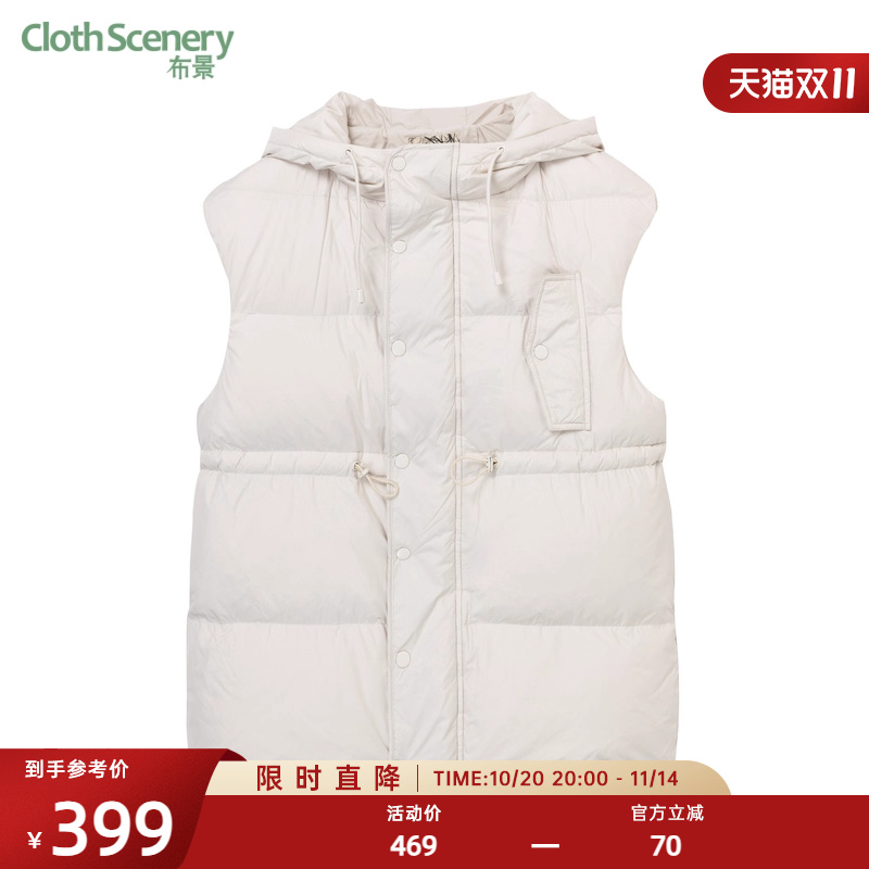 布景羽绒背心女冬季新品简约连帽厚款白鸭绒马甲厚款外套2403
