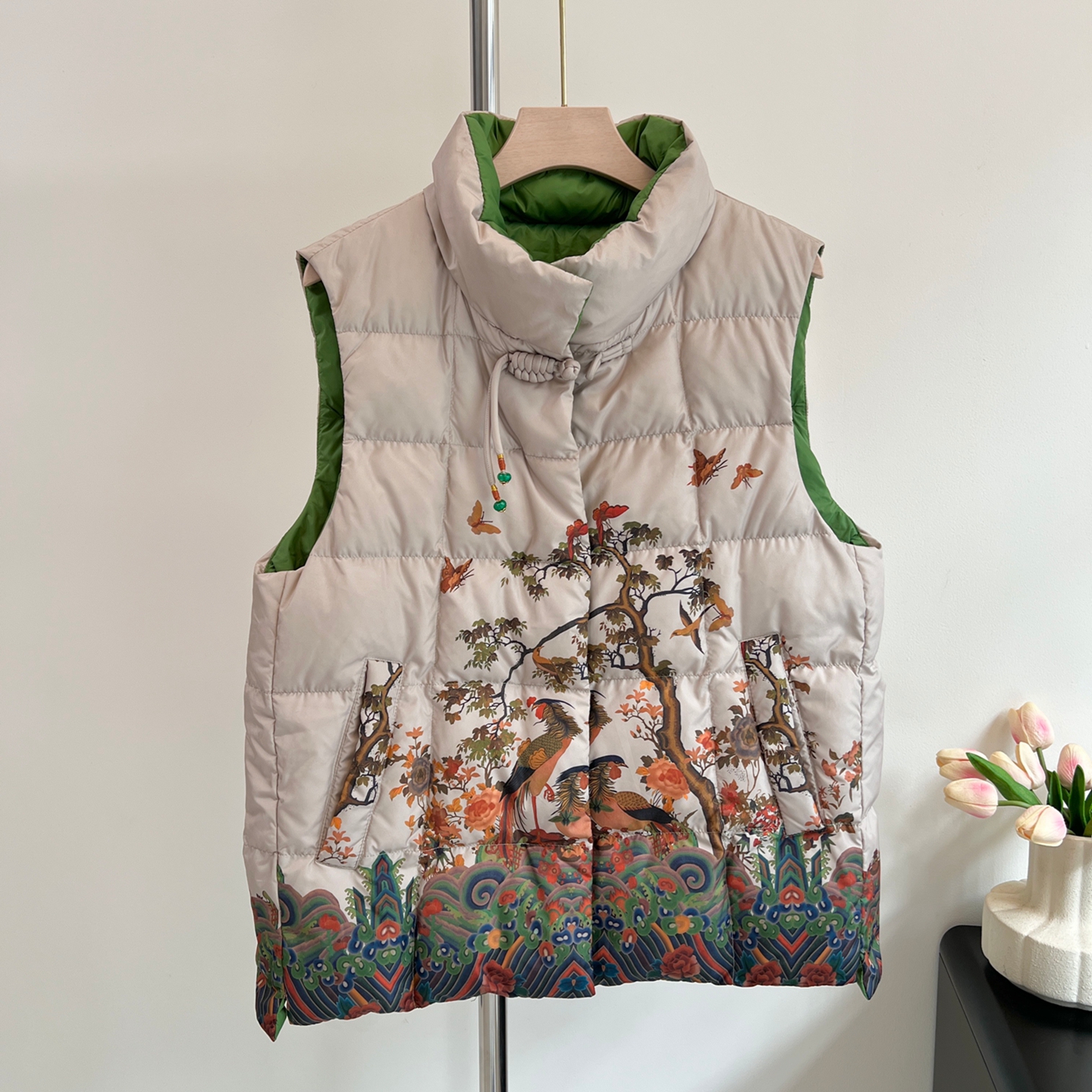 谜底羽绒背心女冬新款复古特色胸衣式设计感羽绒服234MY1588