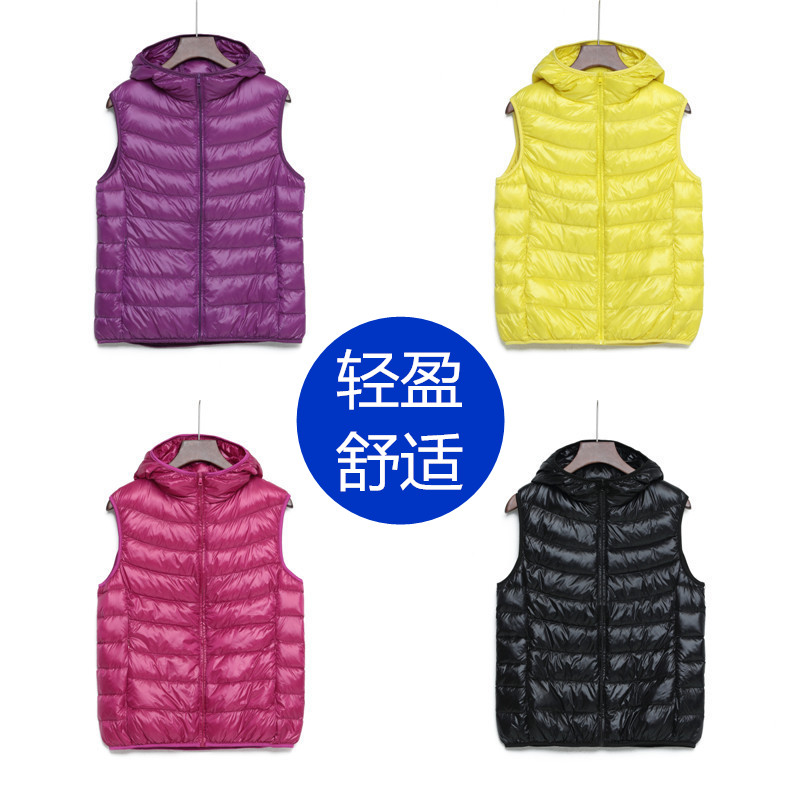 日单折扣冬季便携式轻薄羽绒背心女90白鸭绒内胆短款羽绒马甲坎肩