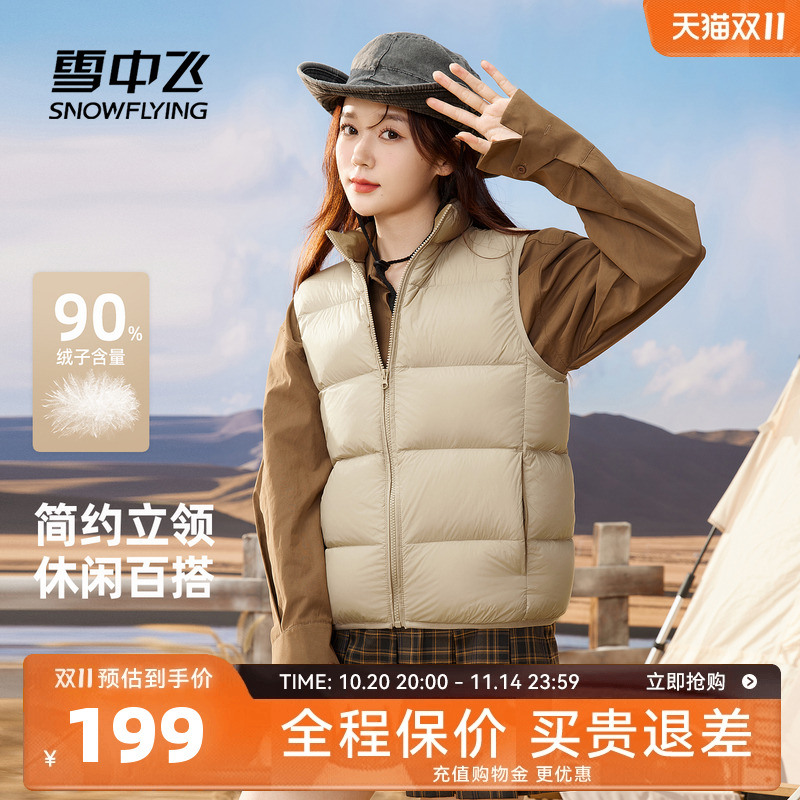 诺诗兰羽绒背心女秋冬新款防风防泼高蓬松鹅绒加厚马甲NDVFH2830S