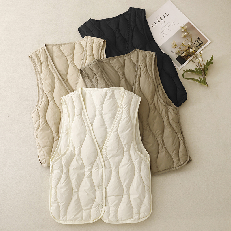 轻便保暖V领羽绒背心女极简韩版90白鸭绒棉服内胆冬季马甲开衫