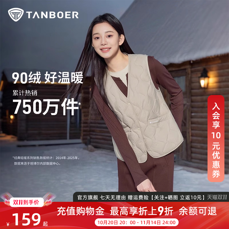 坦博尔2025秋冬新款羽绒背心女外穿V领短款百搭保暖羽绒马甲修身