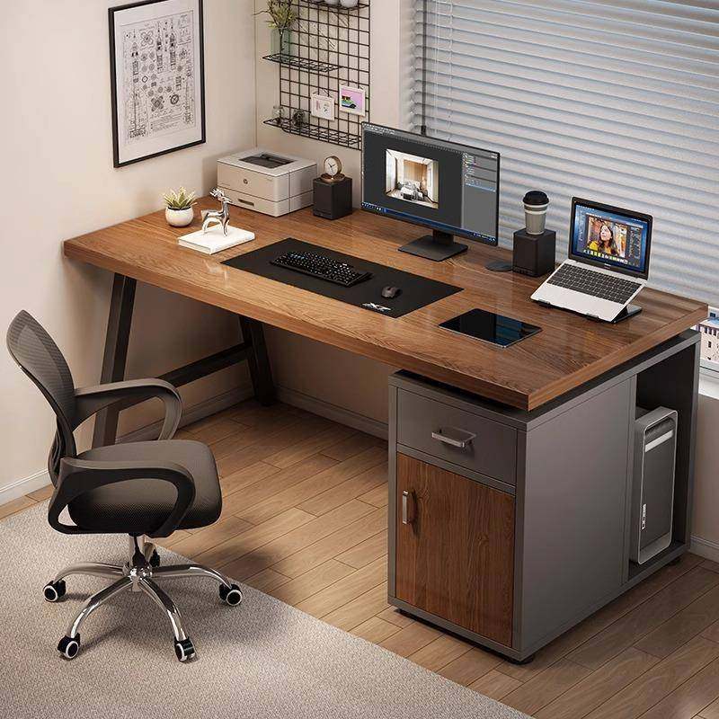 原木家用书桌简约现代办公桌带抽屉格子柜工作台卧室转角桌学习桌