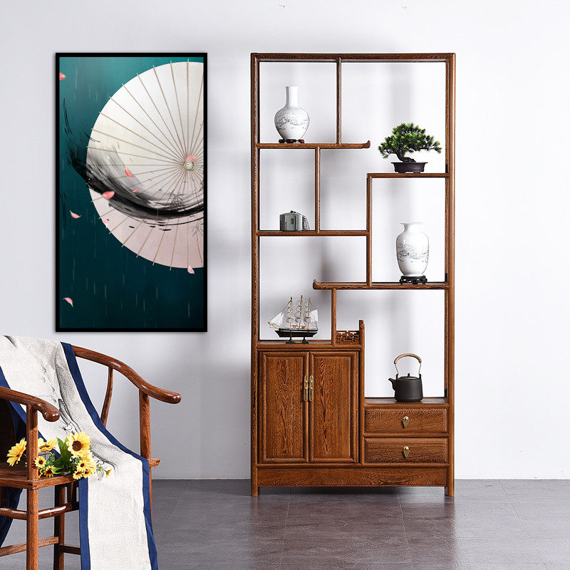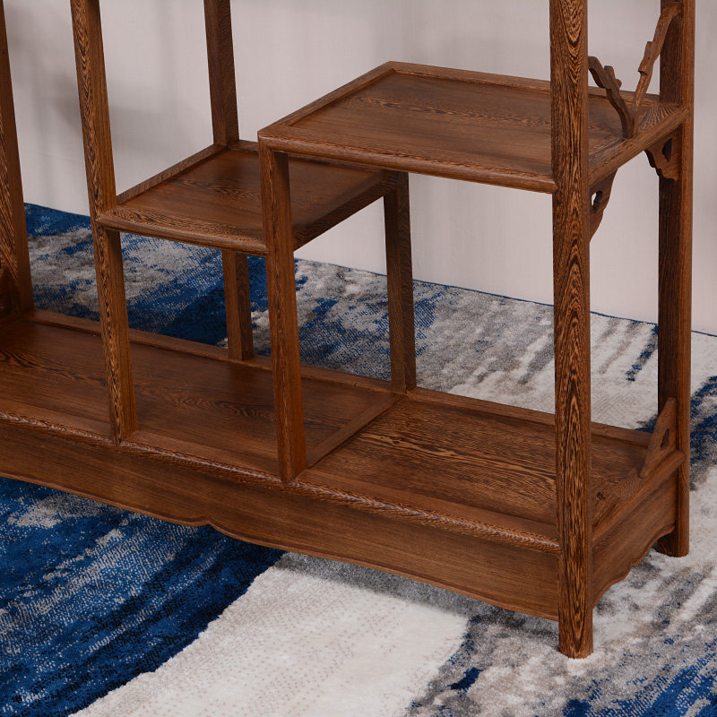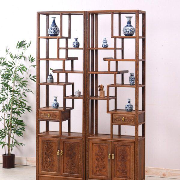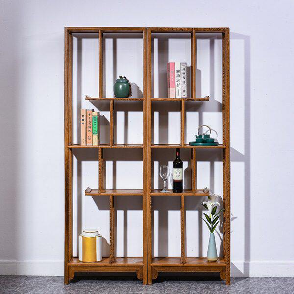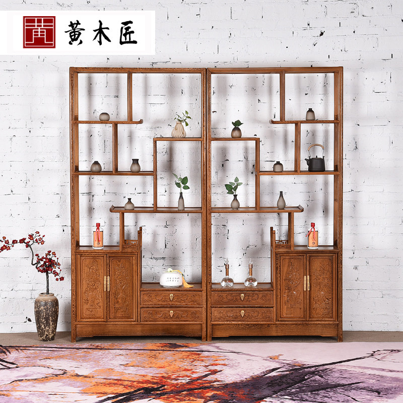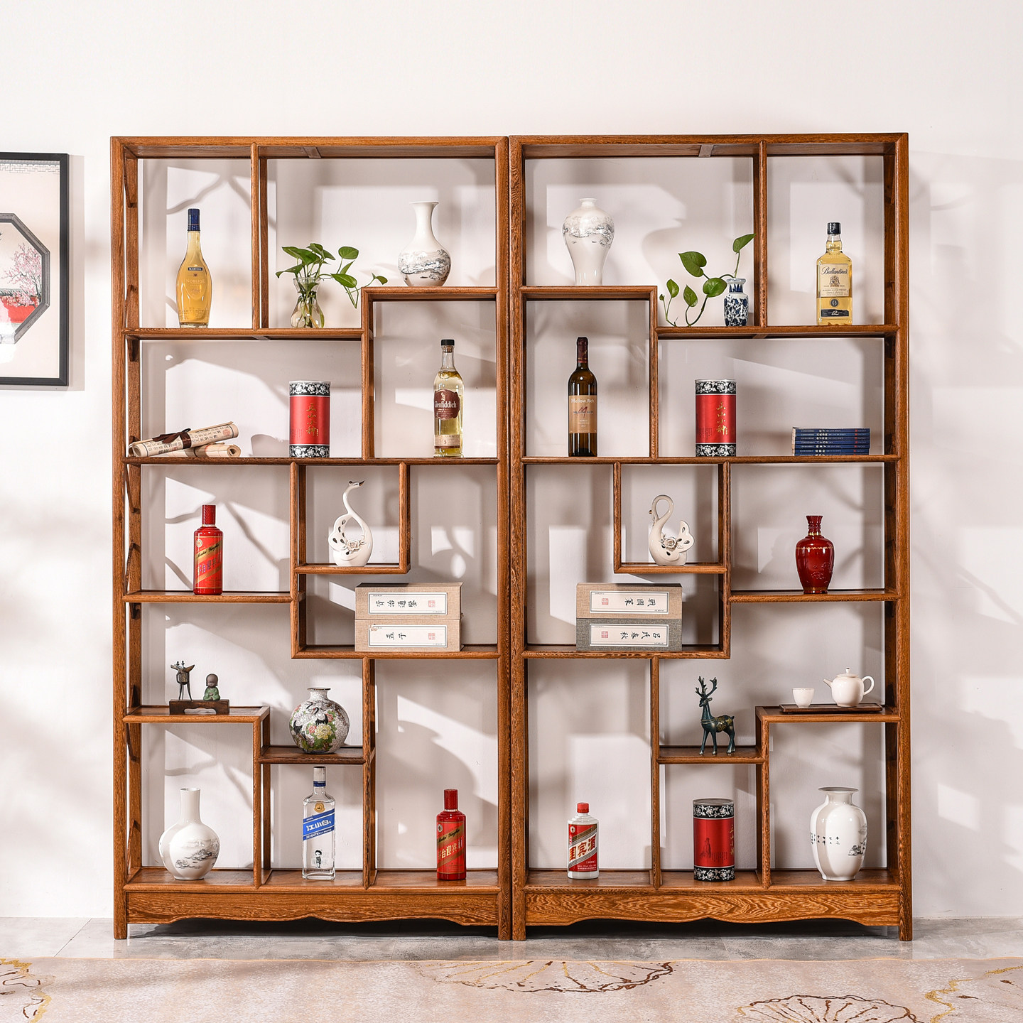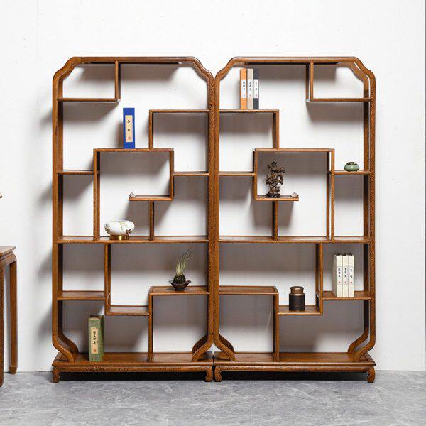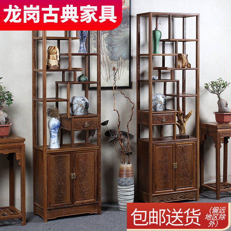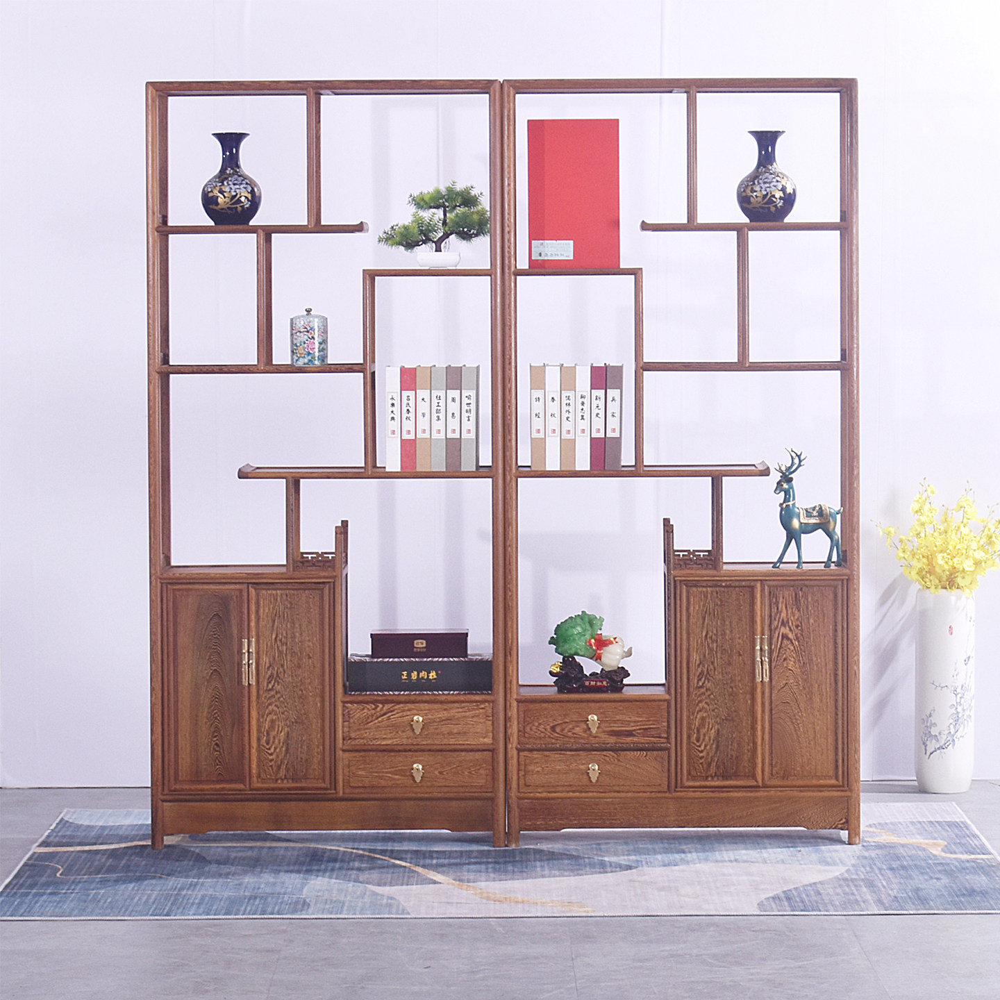 鸡翅木博古架实木新中式茶室多宝阁红木置物架仿古客厅隔断古董架