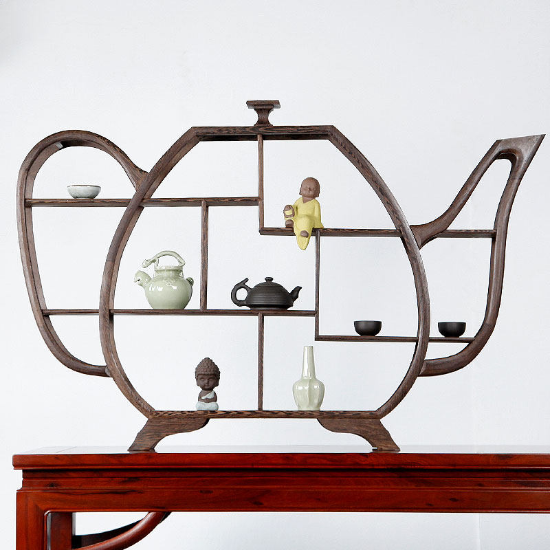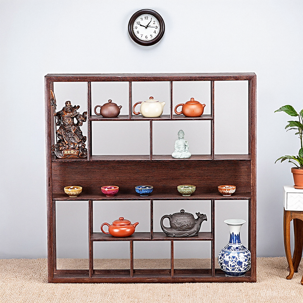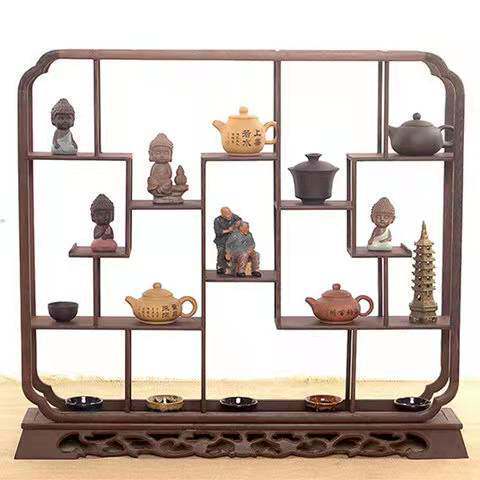 茶室小茶壶红木展示柜茶具置物架实木鸡翅木博古架新中式茶叶架子
