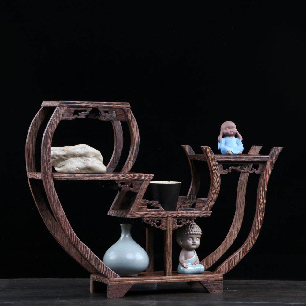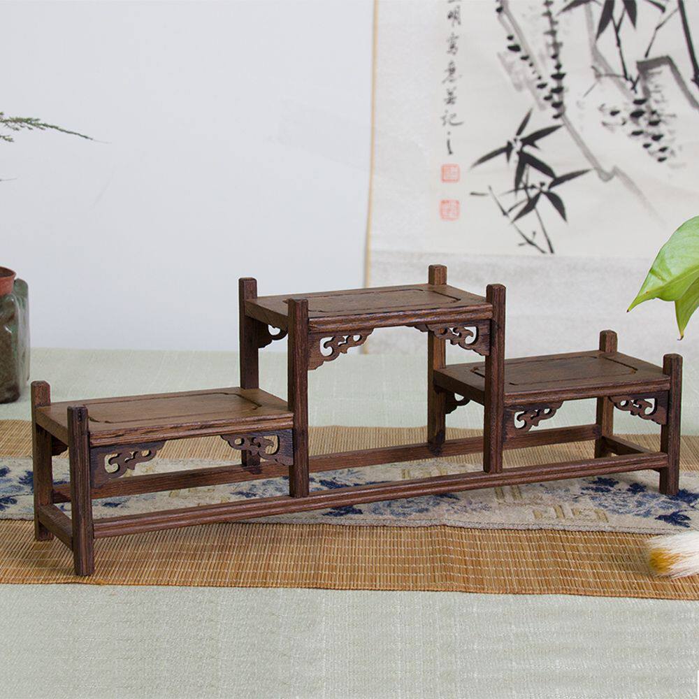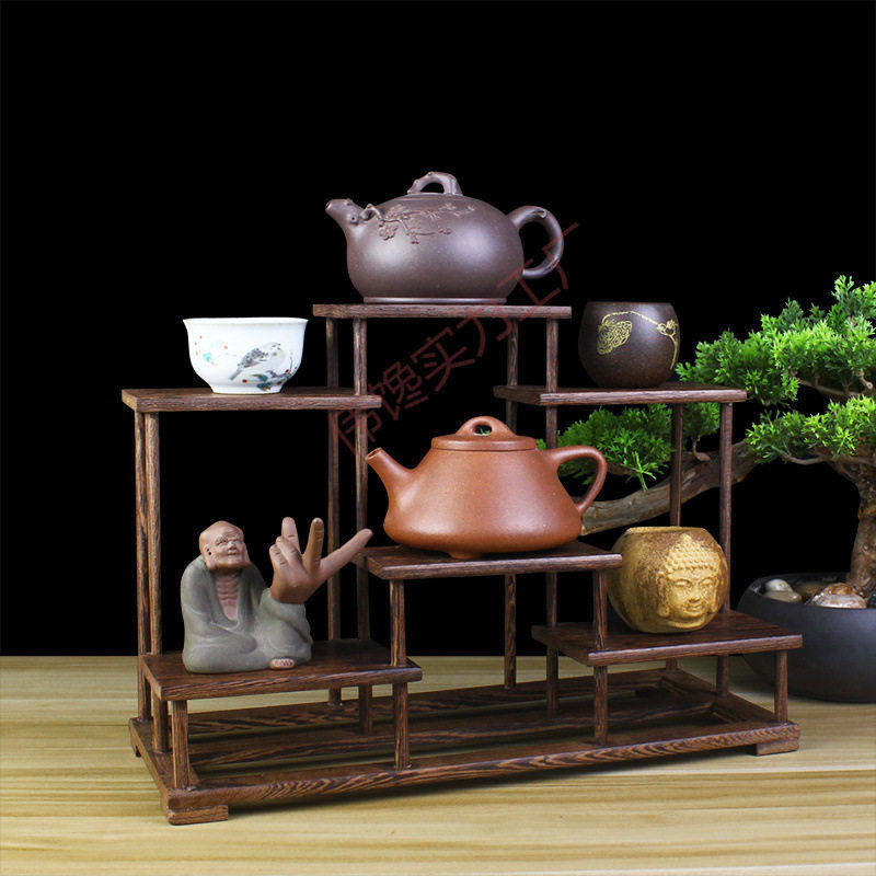 茶壶茶具紫砂壶架子鸡翅木博古架实木中式小型多宝阁底座盆景托架