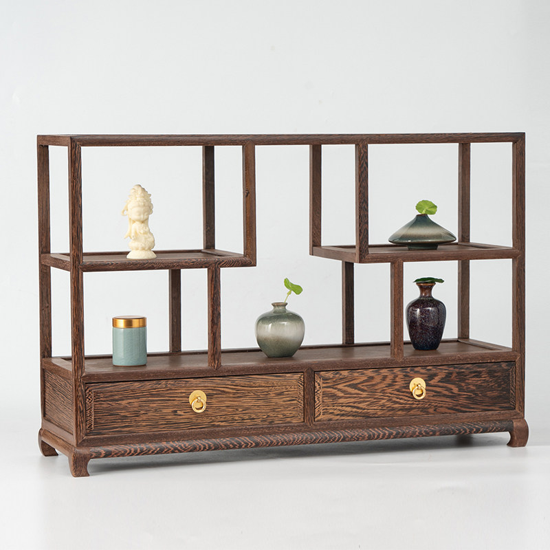 鸡翅木博古架实木中式抽屉多宝阁桌面柜古董置物架收纳橱柜茶叶架