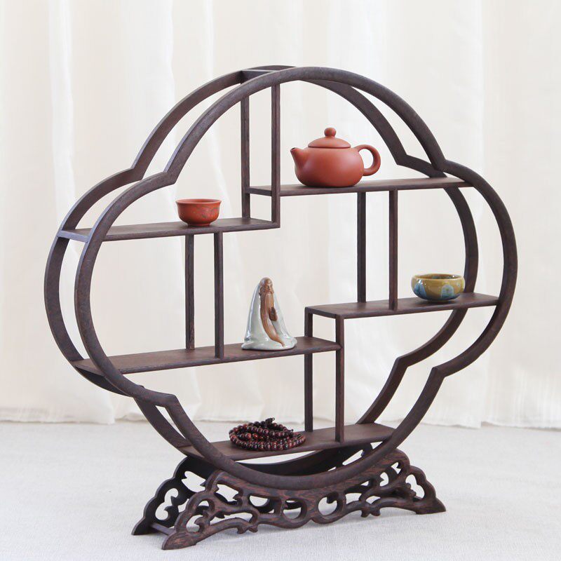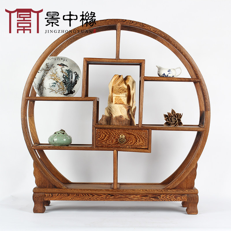 鸡翅木博古架小实木质圆形现代中式复古客厅古董茶壶展示架收纳架