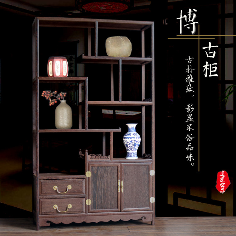 鸡翅木博古架实木中式多宝阁红木茶叶柜古董置物架玄关隔断茶叶架
