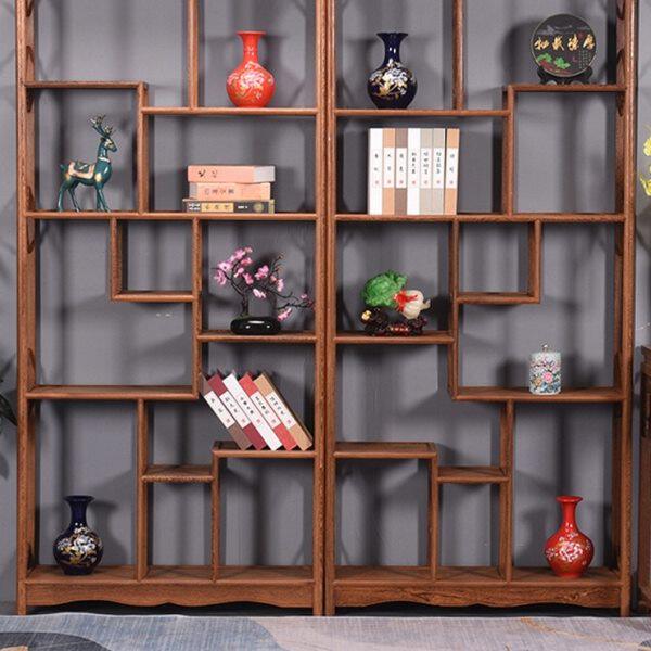 鸡翅木博古架红木新中式实木多宝阁展示柜 茶室隔断置物架 古董架