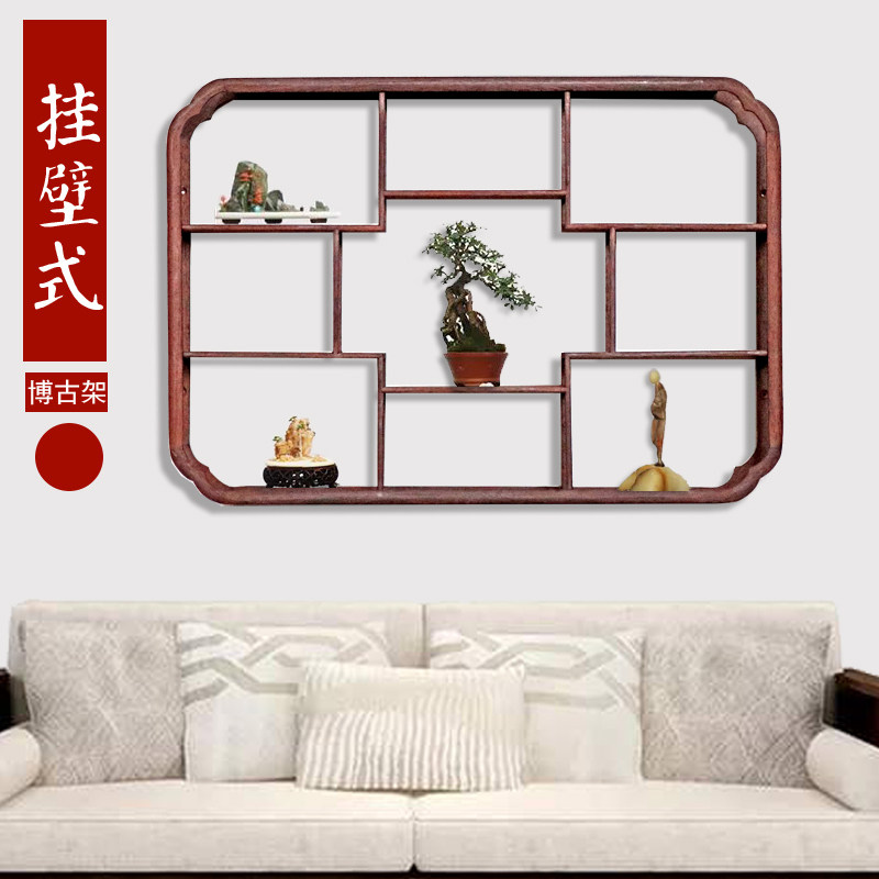 鸡翅木博古架小实木中式壁挂墙上多宝阁茶壶茶叶架子置物架古董架