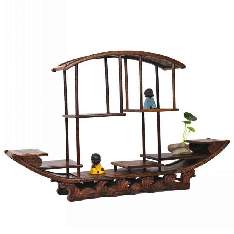 鸡翅木博古架实木多宝阁文玩展示架家居木制工艺品摆件前后台龙舟