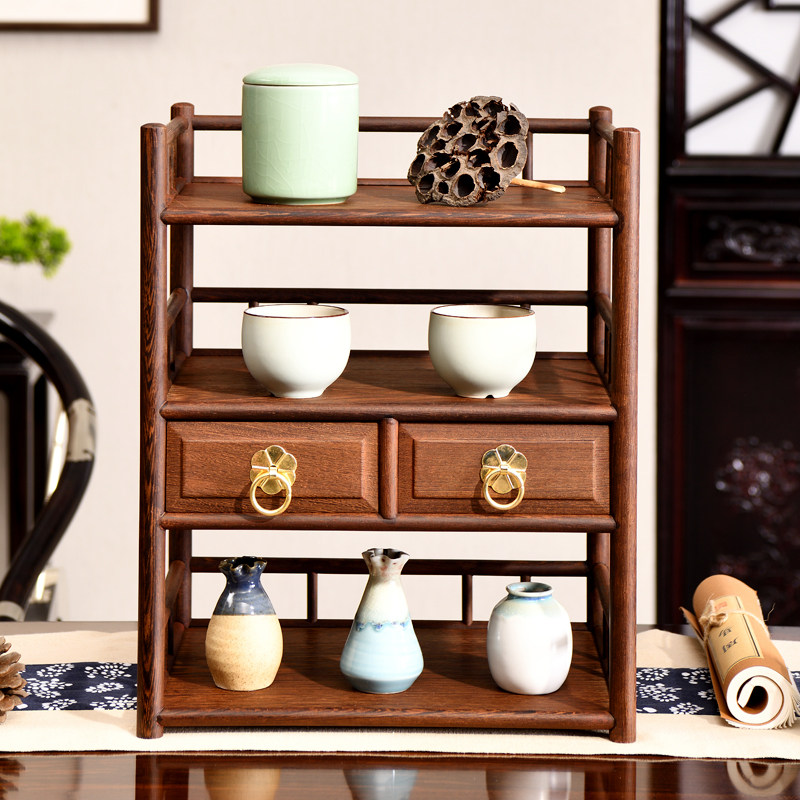 鸡翅木博古架实木中式茶具架茶室茶桌台式茶杯架子茶柜置物架摆件