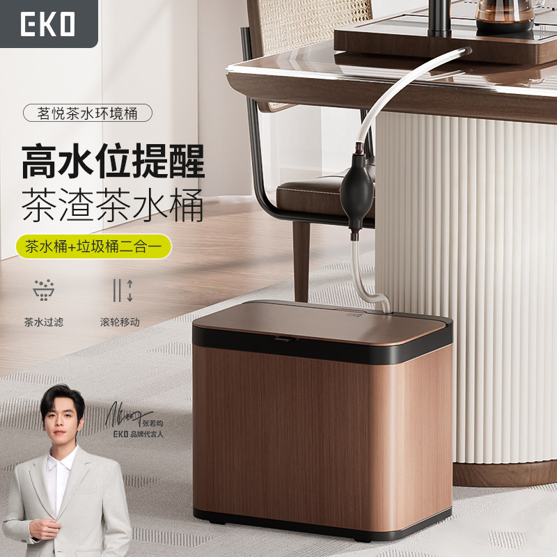 EKO茶水桶客厅废水桶茶台干湿分离垃圾桶办公室高端不锈钢茶渣桶