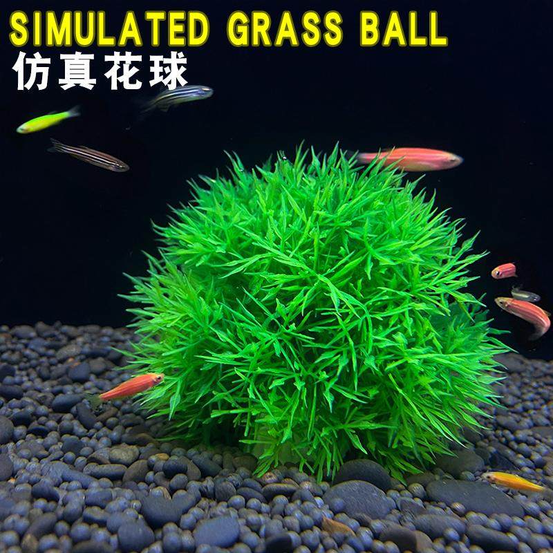 鱼之家仿真草球水草水族箱装饰造景藻球鱼缸龟缸饰摆件塑料草绿色
