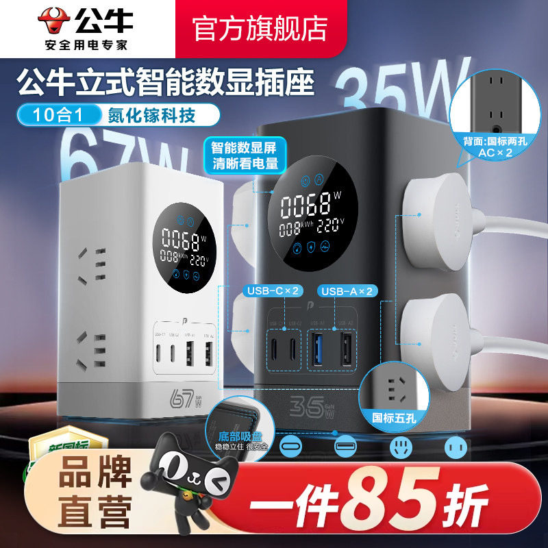 公牛魔方插座充电插排排插插线板接线板多功能家用转换器快充便携