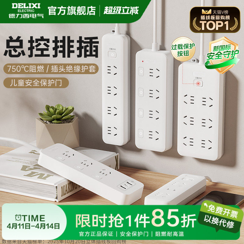 德力西官方插座插排插线板总开关接线板拖线板多功能排插插板家用